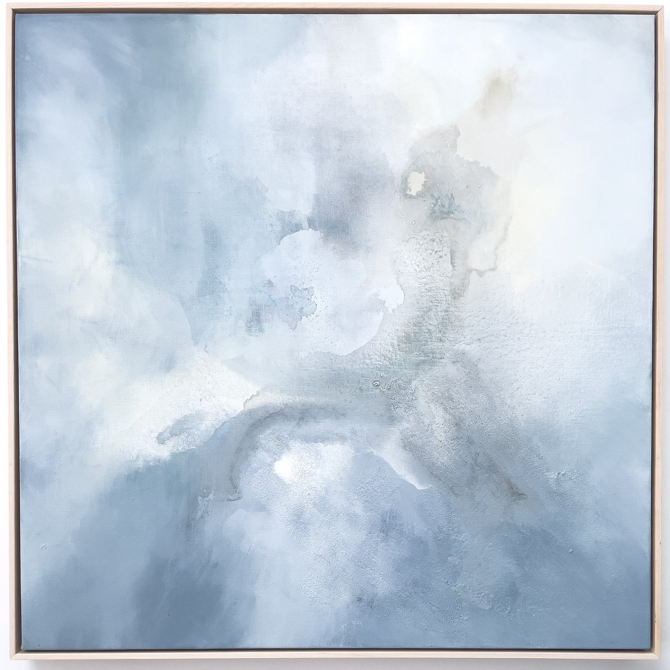 24 x .75 x 24", Acrylic, coffee, limestone & sand on linen canvas, framed in maple